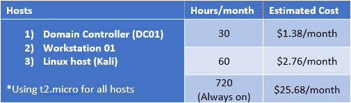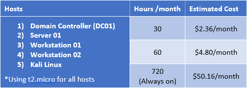 Nytro Posted May 5, 2017 Report Posted May 5, 2017 Thursday, May 4, 2017 Pentest Home Lab - 0x0 - Building a virtual corporate domain Whether you are a professional penetration tester or want to be become one, having a lab environment that includes a full Active Directory domain is really helpful. There have been many times where in order to learn a new skill, technique, exploit, or tool, I've had to first set it up in an AD lab environment. Reading about attacks and understanding them at a high level is one thing, but I often have a hard time really wrapping my head around something until I've done it myself. Take Kerberoasting for example: Between Tim's talk a few years back, Rob's posts, and Will's post, I knew what was happening at a high level, but I didn't want to try out an attack I'd never done before in the middle of an engagement. But before I could try it out for myself, I had to first figure out how to create an SPN. So off to Google I went, and then off to the lab: I set up MSSQL on a domain connected server in my home lab I created a new user in my AD I created a SPN using setspn, pairing the new user to the MSSQL instance I used Empire to grab the SPN hash as an unprivileged domain user (So cool!!) I sent the SPN hash to the password cracker and got the weak password THAT was a fun night! So back to the goal of this blog series. I'll share what I've learned while building my own lab(s), I'll share some of the things I've done in my lab to try and improve my skills, and for every attack I cover, I'll also cover how to set up your lab environment. Selecting Your Virtualization Stack QUESTION: Should I build this in the cloud or on premises? Before we can get to any of the hacking, we need to talk about where you are going to install your virtual environment. In fact, your home lab doesn't even need to be located within your home. I'll give an overview of each option, but the decision will likely be influenced by what hardware you having lying around, how much you want to spend up front, and how much you will be using your lab. In the end, you might even want to try more than one option, as they all have distinct benefits. Cloud Based Often, building a home lab using dedicated hardware is cost prohibitive. In addition to hardware costs, if you add windows licensing costs, a traditional home lab can get really expensive. The good news is these days you don't need to buy any hardware or software (OS). You can build your lab using AWS, Azure, Google, etc. In addition to not having to purchase hardware, another major advantage of building your lab in the cloud is that the Windows licensing costs are built into your hourly rate (at least for AWS -- I'm not as familiar with Azure or Google). Pros Hardware No hardware purchases OS Licensing No Windows OS software purchases No expiring Windows eval licenses Hourly Pricing You only pay for the time you use the lab machines Education You will learn a lot about the cloud stack you are building on Cons Cost Leaving your instances running gets pretty expensive. Four windows servers (t2.micro) running 24/7 will put you at around 45 bucks a month Keeping track of instances If you don't want them running all the time, you will have to remember to shut down instances when not in use or configure CloudWatch to do that for you You can't pause instances In AWS at least, you can't pause VMs like you can with virtualization software. This is pretty annoying if you are used to pausing your VM's at the end of each session and picking up where you left off Limited Windows OS Support No Windows 7/8/10 images (might be AWS specific) Some testing activities need to be approved You'll have to notify the cloud provider if you want to attack your instances from outside your virtual private cloud (VPC) AWS Math AWS can be cheap, or it can get very expensive, depending on how you use it. The key here is to think about how much you will be using your lab. If you think you will play in your lab around 3 hours a night about 10 nights a month, AWS makes a lot of sense. If you are going to be running your hosts permanently, it will probably be more cost effective to run your lab on premises. Here are some cost estimations using AWS's cost estimator: 2 Windows instances, 1 Kali instance 4 Windows instances, 1 Kali instance As you can see, the difference is pretty extreme. Remember to turn off those instances when not in use! One caveat with building your lab entirely in the cloud, at least with AWS, is that AWS does not offer an AMI for Windows 7/8/10. While it appears possible to use your own Windows7/8/10 image, now you are back to either using eval licenses or paying for them. While doing research for this blog series, I came across something called AWS workspaces, and even that does not use 7/8/10. It simulates a desktop environment using Microsoft's Desktop Experience via Windows Server 2012. After playing around with Amazon Workspaces, I realized it is not the best option for a pentest lab due to monthly costs ($7 per month per workstation), but I did learn you don't really NEED Windows 7/8/10 in your pentest home lab to do most of what we will want to do, which was a good lesson. In an upcoming post, I will write in detail about Building your AD lab on AWS. On Premises If you are going to build the lab on your own hardware, the next decision you need to make is: Do I use dedicated hardware and a hypervisor, or do I run software that sits on top of my host OS like VMware Workstaion Pro, Workstation Player, VMware Fusion (Mac), or Virtualbox? Using your Desktop/Laptop If you have a desktop/laptop that has plenty of resources to spare, there is no reason you can't set this entire environment up on your OS of choice using either VMware or VirtualBox. On my laptop, I use VMware Workstation and have a test domain with 1 domain controller, 1 additional Windows server, and 1 Windows7 host. With a 1TB HDD and 16GB of RAM, I can run all three if I need to, and Kali a