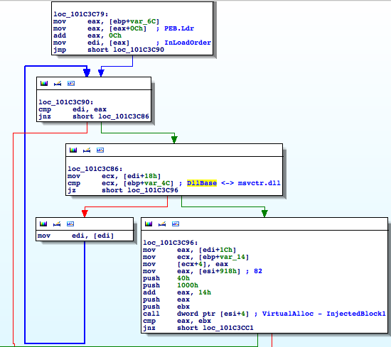 Nytro Posted June 29, 2012 Report Posted June 29, 2012 [h=3]Inside Flame: You Say Shell32, I Say MSSECMGR[/h][h=2]Thursday, June 28, 2012[/h]By Ruben SantamartaWhen I was reading the CrySyS report on Flame (sKyWIper)[1], one paragraph in particular caught my attention:In case of sKyWIper, the code injection mechanism is stealthier such that the presence of the code injection cannot be determined by conventional methods such as listing the modules of the corresponding system processes (winlogon, services, explorer). The only trace we found at the first sight is that certain memory regions are mapped with the suspicious READ, WRITE and EXECUTE protection flags, and they can only be grasped via the Virtual Address Descriptor (VAD) kernel data structureSo I decided to take a look and see what kind of methods Flame was using.Flame is conceived to gather as much information as possible within heterogeneous environments that can be protected by different solutions, isolated at certain levels, and operated upon by different profiles. Which means that, from the developers point of view, you can't assume anything and should be prepared for everything.Some of the tricks implemented in Flame seem to focus on bypass just as much AV products, specifically in terms of heuristics. A distributed "setup" functionality through three different processes (winlogon, explorer, and services ) is way more confusing than letting a unique, trusted process do the job; i.e. it's less suspicious to detect Internet Explorer coming from explorer.exe than winlogon.In essence, the injection method seems to pivot around the following three key features:· Disguise the malicious module as a legitimate one; Shell32.dll in this case.· Bypass common registration methods supplied by the operating system, such as LoadLibrary, to avoid being detected as an active module.· Achieve the same functionality as a correctly-registered module.So, let's see how Flame implements it.During the initial infection when DDEnumCallback is called, Flame injects a blob and creates a remote thread in Services.exe. The blob has the following structure:The loader stub is a function that performs the functionality previously described: basically a custom PE loader that's similar to the CryptoPP dllloader.cpp[2] with some additional tricks.The injection context is a defined structure that contains all the information the loader stub may need including API addresses or names, DLL names, and files—in fact, the overall idea reminded me of Didier Stevens' approach to generating shellcodes directly from a C compiler[3]Injection Context: Blob + 0x710 API Addresses:[TABLE][TR][TD]esi OpenMutexW esi+4 VirtualAllocesi+8 VirtualFreeesi+0Ch VirtualProtectesi+10h LoadLibraryAesi+14h LoadLibraryWesi+18h GetModuleHandleAesi+1Ch GetProcAddressesi+20h memcpyesi+24h memsetesi+28h CreateFileMappingWesi+2Ch OpenFileMappingW[/TD][TD]esi+30h MapViewOfFileesi+34h UnmapViewOfFileesi+38h ReleaseMutexesi+3Ch NtQueryInformationProcessesi+40h GetLastErroresi+44h CreateMutexWesi+48h WaitForSingleObjectesi+4Ch CloseHandleesi+50h CreateFileWesi+54h FreeLibraryesi+58h Sleepesi+5Ch LocalFree[/TD][/TR][/TABLE]The loader stub also contains some interesting tricks.[h=3][/h][h=3]Shell32.dll: A matter of VAD[/h]To conceal its own module, Flame hides itself behind Shell32.dll, which is one of the largest DLLs you can find on any Windows system, meaning it's large enough to hold Flame across different versions.Once shell32.dll has been mapped, a VAD node is created that contains a reference to the FILE_OBJECT, which points to Shell32.dll. Flame then zeroes that memory and loads its malicious module through the custom PE loader, copying sections, adjusting permissions, and fixing relocations.As a result, those forensics/AntiMalware/AV engines walking the VAD tree to discover hidden DLLs (and not checking images) would be bypassed since they assume that memory belongs to Shell32.dll, a trusted module, when it's actually mssecmgr.ocx.The stub then calls to DllEntryPoint, passing in DLL_PROCESS_ATTACH to initialize the DLL.The malicious DLL currently has been initialized, but remember it isn't registered properly, so cannot receive remaining events such as DLL_THREAD_ATTACH, DLL_THREAD_DETACH, and DLL_PROCESS_DETACH.And here comes the final trick:The msvcrt.dll is loaded up to five times, which is a little bit weird, no?Then the PEB InLoadOrder structure is traversed to find the entry that corresponds to msvcrt.dll by comparing the DLL base addresses:Once found, Flame hooks this entry point:InjectedBlock1 (0x101C36A1) is a small piece of code that basically dispatches the events received to both the malicious DLL and the original module. The system uses this entry point to dispatch events to all the DLLs loaded in the process; as a result, by hooking into it Flame's main module achieves the goal of receiving all the events other DLLs receive. Therefore, it can complete synchronization tasks and behaves as any other DLL. Neat.I assume that Flame loads msvcrt.dll several times to increase its reference count to prevent msvcrt.dll from being unloaded, since this hook would then become useless.See you in the next post![1] http://www.crysys.hu/skywiper/skywiper.pdf[2] dllloader.cpp - secureimplugin - SecureIM plugin for Miranda IM - Google Project Hosting[3] Shellcode Quote