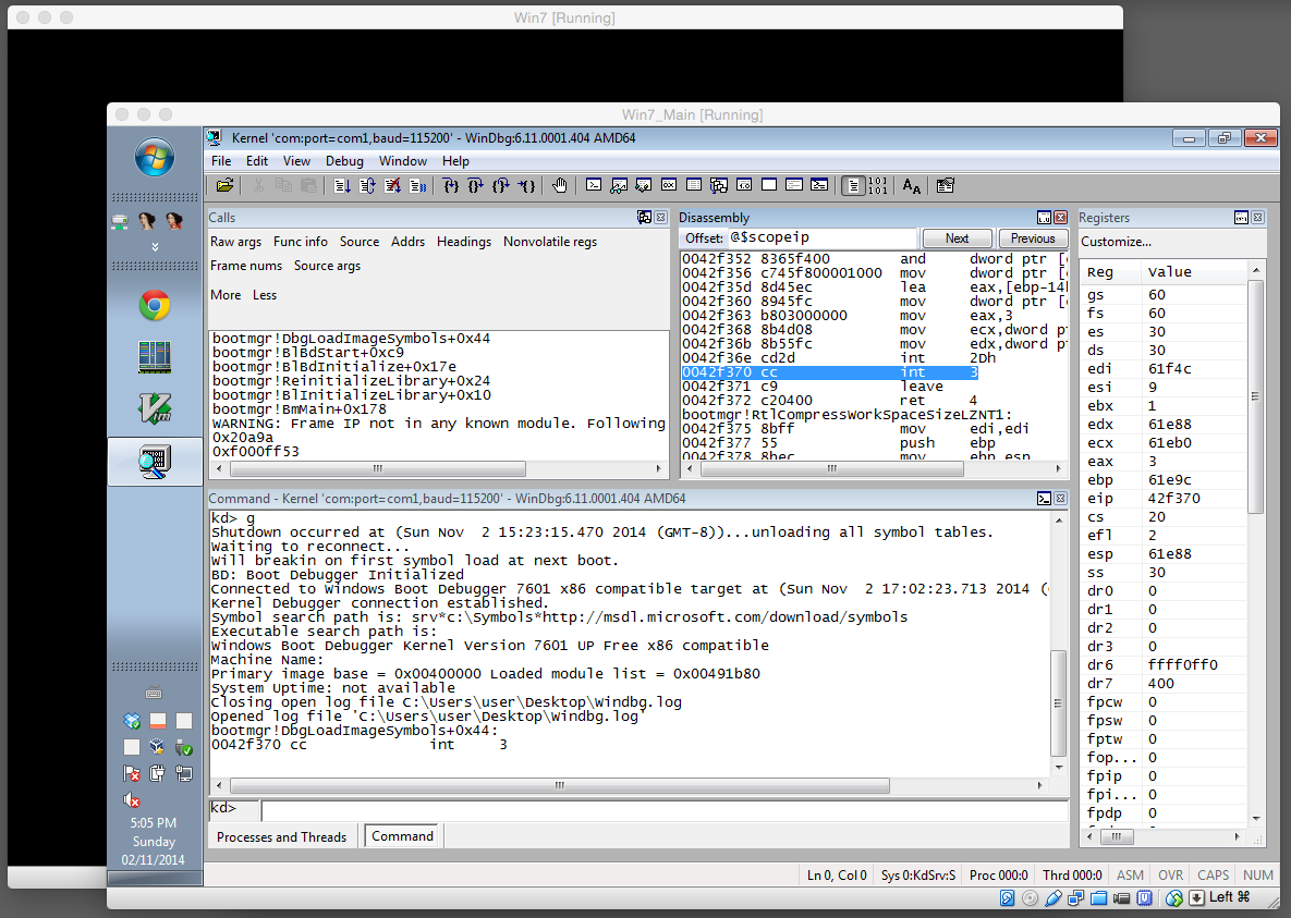 Nytro Posted November 3, 2014 Report Posted November 3, 2014 [h=3]Debugging Early Boot Stages of Windows[/h] Recently, I have spent some time for reverse engineering bootkit. It has been a fun exercise, but I had to struggle for setting up the environment before that as I could not find a page explains these steps. So as a note for me, I wrote down how to build a bootkit debugging environment as well as how to configure Windows in order to attach a debugger at some early uncommon boot stages. [h=3][/h] [h=3]Boot Processes[/h] Here are boot processes of BIOS based Windows XP and Windows 7 systems. I will discuss each stage except for BIOS (POST) and Ntoskrnl.exe.[h=4][/h] [h=4][/h] [h=4]Boot Process (XP)[/h] BIOS (POST) -> MBR -> VBR -> Ntldr (Real-Mode) -> Ntldr (Protected-Mode) -> Ntoskrnl.exe [h=4]Boot Process (Windows 7)[/h] BIOS (POST) -> MBR -> VBR -> Bootmgr (Real-Mode) -> Bootmgr (Protected-Mode) -> Winload.exe -> Ntoskrnl.exe [h=3]Debugging[/h] [h=4]MBR, VBR, Ntldr (Real-Mode) and Bootmgr (Real-Mode)[/h] We need Bochs as no break points are provided on the course of these steps. Installing OS on Bochs is not hard unless you try to find the perfect configurations such as smooth mouse movement, correct clock speed and working NICs. Since we are not going to use this OS anything but boot debugging, I do not encourage you to spend time for it.What you need to do to install OS are roughly as follows:Create a flat hard disk image with 10GB size using bximage.exe.Configure bochs.bxrc with boches.exe to use the created hard disk image and an OS installer ISO image.Start to install OS.Installation may take a few hours. I also strongly recommend you to use the latest version of Bochs to avoid unnecessary troubles. Even if your old IDA Pro does not work with the latest one like my case, you can switch to old one after you completed the installation process for debugging. Here are my bochsrc files for version 2.6.6 and 2.4.6 with nearly identical configurations. You may use them as samples when you are not familiar with Bochs.Once you have finished installing the OS (no need for applying Windows updates), you can debug MBR and VBR with either running it with bochsdbg.exe or corroborating with IDA Pro. If you hope to take the former way, you can add the following settings to enable a GUI debugger. ----display_library: win32, options="gui_debug"---- Although the GUI debugger works perfectly fine, it is far better to use IDA Pro if you have. Here is an article about this process by HeyRays, but in a nutshell, you can follow these steps:Download a file mentioned in the article.Copy mbr.py to the same directory as a location of the hard disk image file.Download and copy this batch file to the same directory (you will need to change paths in it).Run the batch file.You will see IDA Pro breaks at the very beginning of MBR (0x7c00) unless there is an error in configurations. Now, you can trace the code and should be able to debug VBR as well. [h=4]Ntldr (Real-Mode) and Bootmgr (Real-Mode)[/h] Although it is totally possible to trace the code until it reaches to Ntldr or Bootmgr, it can be time consuming. One solution is to modify their entry point code with a breakpoint. Luckily, offset 0 of these files are actually entry points, so we can change offset 0 to a breakpoint. Here is an original entry point of Ntldr. Also, as we are using a flat hard disk image file, we can search code pattern of Ntldr or Bootmgr from the image file and change it. In my case, Ntldr was found at offset 0x133D55E00 in the image file. Like the above image, you will probably need to install a magic_break provided by Bochs rather than regular 0xCC since the runtime environment is different from usual, the protected mode. Bochs treats an instruction 'xchg bx, bx' (0x87 0xdb) as a breakpoint when the following statement was added to the bochsrc. ---- magic_break: enabled=1 ---- Once you boot the virtual machine with Bochsdbg.exe, you should see the VM breaks at 0x2:0002. 0x2:0000 is the actual breakpoint which we have set. You can look an IDA to find where to go from here. In my case, the execution need to go to 0x01d8. Then you can change EIP with a 'set $eip = 0x01d8' command and step in with a 's' command to execute a regular code sequence. Note that my Old IDA Pro (v6.0) did not stop when execution reached at a magic_breakpoint, but this issue may have already been solved on the latest version of IDA.[h=4][/h] [h=4]Ntldr (Protected-Mode)[/h] Steps for debugging Ntldr (Protected-mode) is relatively straightforward:Download and extract Ntldr of the checked build version.Open the extracted Ntldr with a hex editor and find an 'MZ' header in it. Copy all contents after that and save it on a debugger system. We assume that you saved it as E:\osloader.exe in this article. This part contains protected mode code of Ntldr.Overwrite existing C:\ntldr with the extracted Ntldr (not osloader.exe).Add the following [debug] section in boot.ini. ---- [boot loader]timeout=30default=multi(0)disk(0)rdisk(0)partition(1)\WINDOWS[debug]/debug /debugport=COM1: /baudrate=115200 /debugstop[operating systems]multi(0)disk(0)rdisk(0)partition(1)\WINDOWS="Microsoft Windows XP Professional" /noexecute=optin /fastdetectmulti(0)disk(0)rdisk(0)partition(1)\WINDOWS="Microsoft Windows XP Professional (Debug)" /noexecute=optin /fastdetect /debug /debugport=COM1: /baudrate=115200 ---- Once you reboot the debugee XP system, it waits to be connected by a kernel debugger. In order to load symbols and suppress error messages, you can manually read an osloader.exe image. ----kd> .readmem E:\osloader.exe 0x400000 L0x1000Reading 1000 bytes..kd> .imgscan /l /r 00400000MZ at 00400000 - size 80000 Name: osloader.EXE Loaded osloader.EXE module---- Now, you are free to see how Ntoskrnl.exe and boot drivers are initialized. [h=4]Bootmgr (Protected-Mode)[/h] Bootmgr is called the boot manager and responsible for listing a boot menu and firing up an appropriate program accord